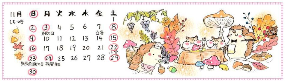 11月休業日のお知らせ & 居心地いい家づくり 更新しました
